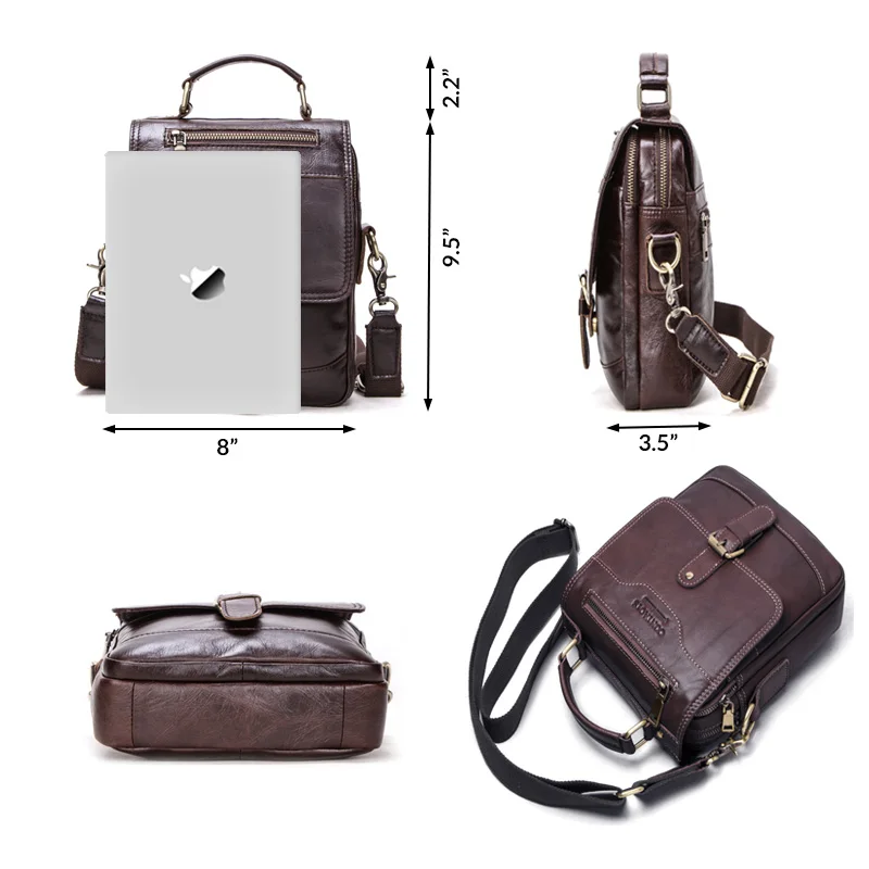 Special Offer Contact s Lederen Mannen Bericht Tassen Voor 7.9in Ipad Vintage Reizen Handtas Rits Metalen Gesp Bedrijf Mannelijke Schoudertas Discount 43% Today!