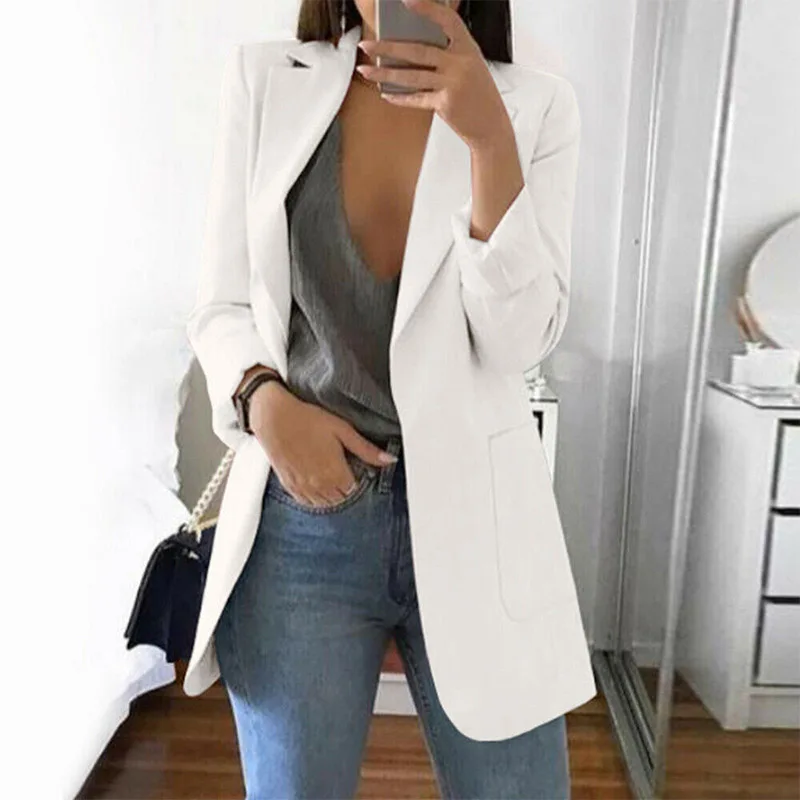 Special Offer 15 kleuren Slanke Blazer Carrière Plus Size Jacket Uitloper Top Lange Jas Casual Vrouwen Discount 45% Today!