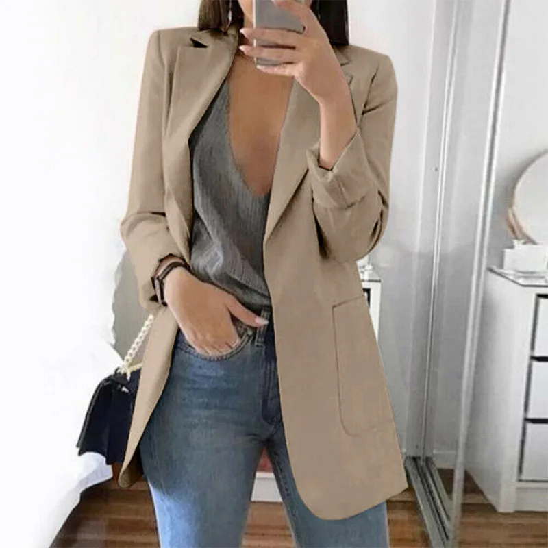 Product Name: 15 kleuren Slanke Blazer Carrière Plus Size Jacket Uitloper Top Lange Jas Casual Vrouwen