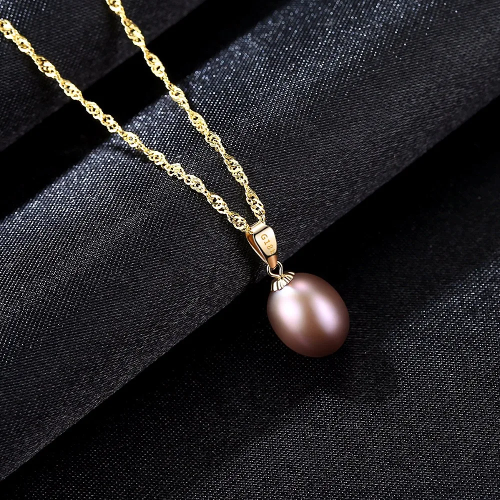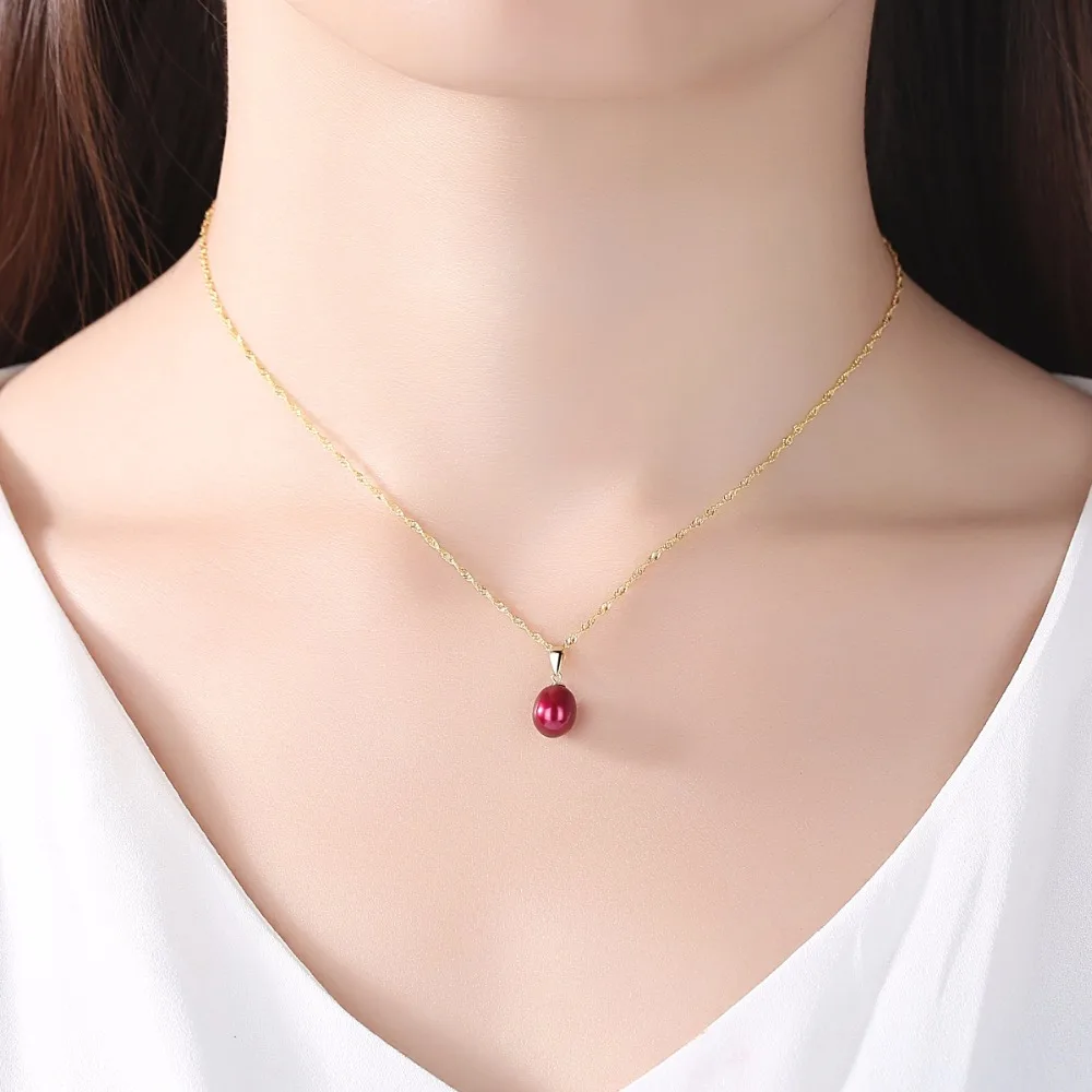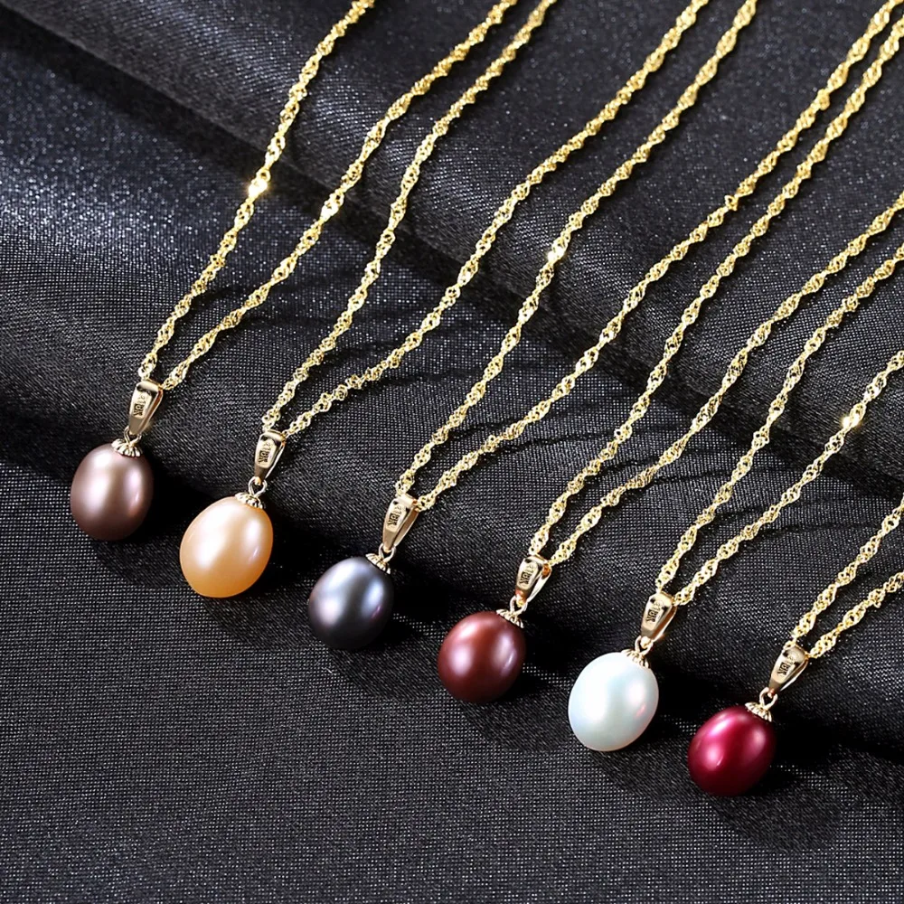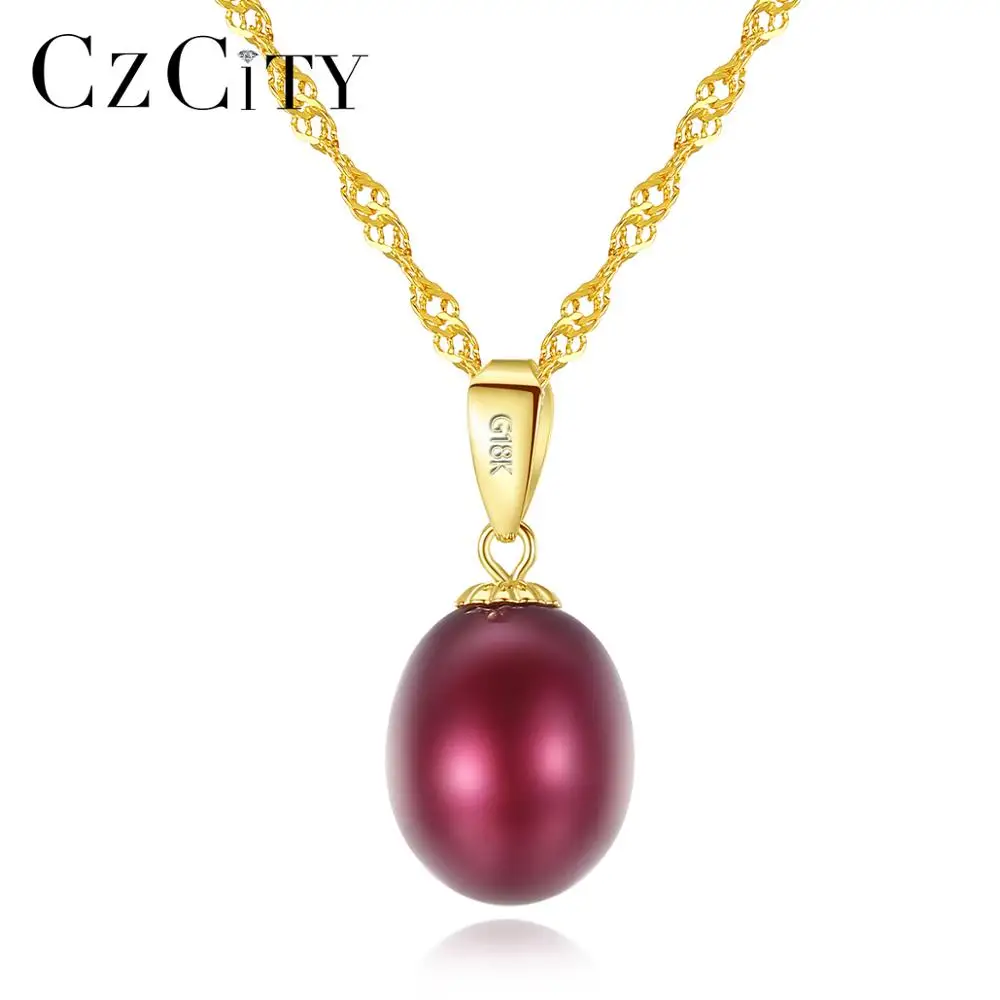 Special Offer Czcity 18K Geel Gouden Hanger Zes Kleuren Natuurlijke Zoetwater Parel Hanger Gratis 925 Water Wave Ketting 40 + 5cm Gift Voor Vrouwen Discount 45% Today!