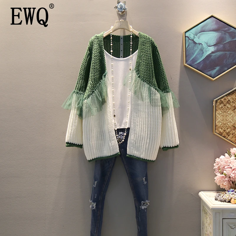 Product Name: [EWQ] 2020 Lente Herfst Hoge Kwaliteit V kraag Lange Mouwen Hit Kleuren Breien Patchwork Mesh Open Stitch trui Vrouwen AH48705
