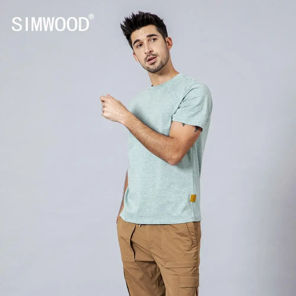 Special Offer SIMWOOD 2019 zomer nieuwe 100% gekleurde katoenen t shirt mannen ronde hals korte mouw t shirt casual hoge kwaliteit tees tops 190116 Discount 49% Today!