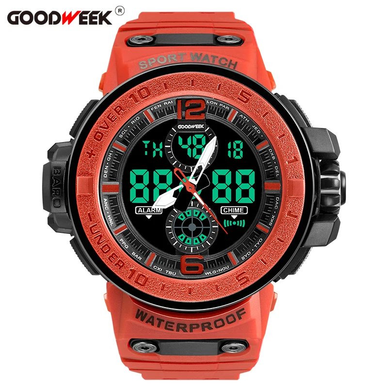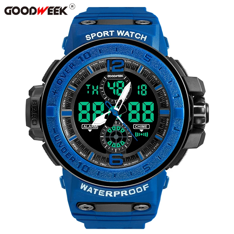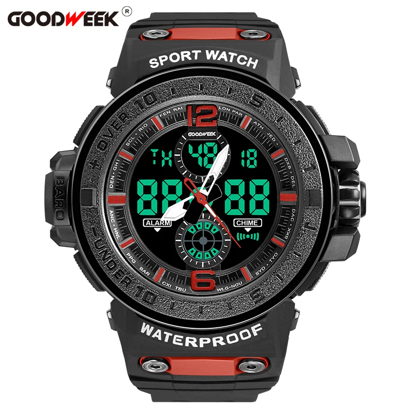 Special Offer GOODWEEK Militaire Mannen Sport Horloges Waterdicht mannen Led Quartz Horloge Multifunctionele Dual Display Horloges Relogios Masculino Discount 55% Today!