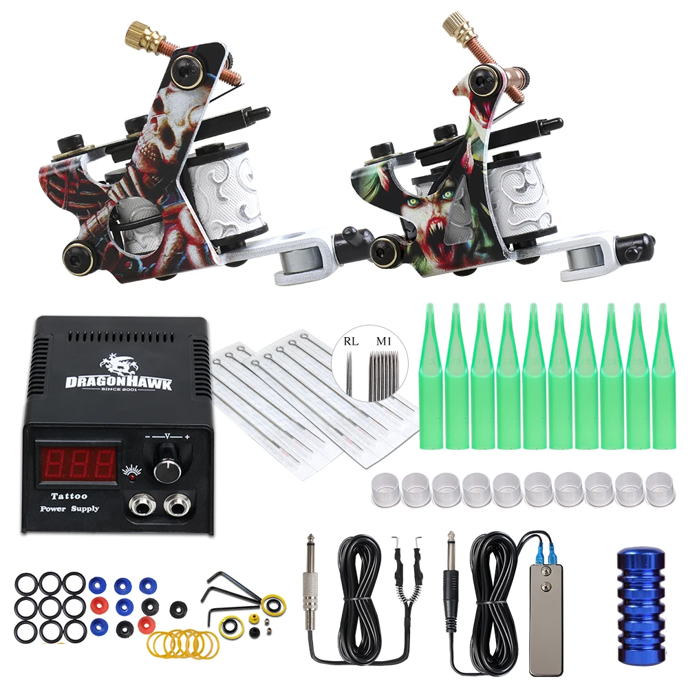 Special Offer Beginner Compleet Tattoo Kit 2 Machine Guns Voeding Naalden Grip Tip Set Discount 31% Today!